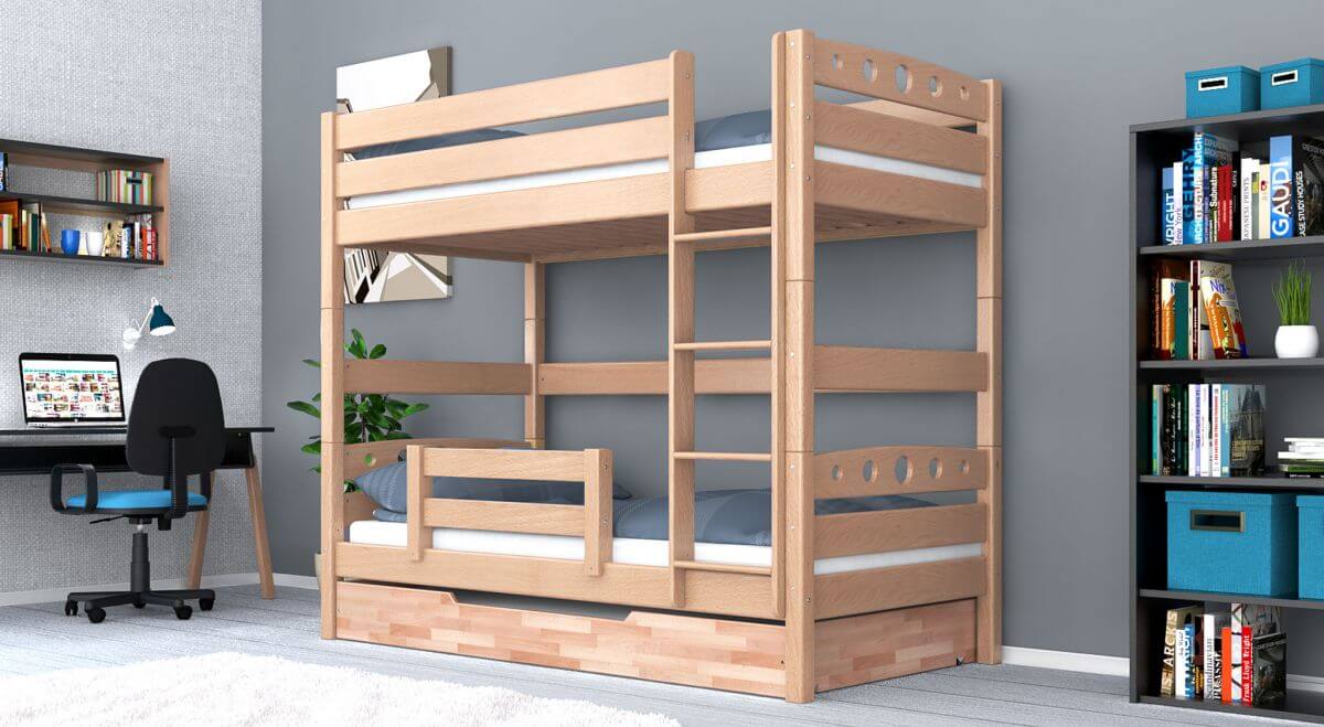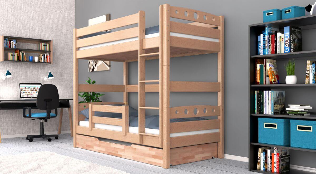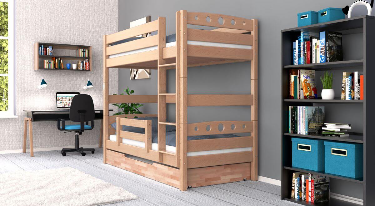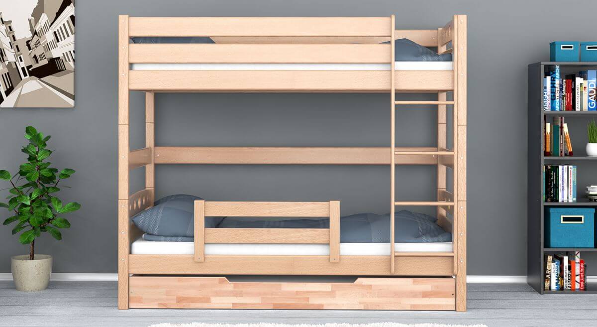 Das Stockbett / Etagenbett MAGNUS II, sowie alle Betten von DELINEA werden aus massivem Buchenholz von allerhöchster Qualität gefertigt, dessen Härte und Dichte für eine hervorragende Stabilität und Robustheit sorgen. Das Bett zeichnet sich durch eine sehr lange Lebensdauer aus, selbst wenn Sie es mehrmals auf – und abbauen. Außer der hervorragenden Stabilität und hohen Belastbarkeit erfüllt das Bett auch die EU-Sicherheitsnorm EN747. Diese Norm legt Anforderungen an die Sicherheit und Festigkeit von Etagenbetten und Hochbetten fest. Zudem wurden alle Kanten abgerundet, womit es zusätzliche Behaglichkeit vermittelt. Die Leiter kann man wahlweise rechts oder links montieren. LIEFERUMFANG:1 x Etagenbett / Stockbett MAGNUS II | ![]() ![]() |